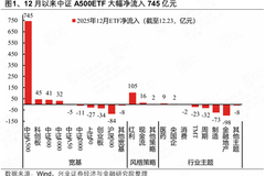 2025年末,新一代核心宽基中证A500ETF上演了激烈的规模大战。截至12月26日,中证A500ETF总规模首度突破3000亿元,再创历史新高,12月以来净流入超960亿元。随着大量资金涌入以中证A500ETF为代表的核心宽基产品,境内ETF总规模于12月26日首度突破6万亿元,刷新历史纪录。目前,共有5只中证A500ETF规模冲上300亿元,A500ETF华泰柏瑞、A500ETF南方、A500ETF易方达等产品规模居前。