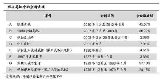 一般认为,黄金因其与其他资产相关性低而具有一定的避险功能; 历史上数次金融危机期间,黄金价格都有着不俗表现。 |