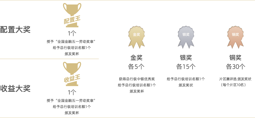 2017年12月20日,首届“中国银行个人客户经理专业技能竞赛”总决赛在中国银行总行大厦落下帷幕。来自境内和海外地区的优秀理财经理参加总决赛角逐,最终,两位优胜理财经理分别获得“理财之星”和“服务之星”金奖,他们同时获得由中国金融工会颁发的“全国金融五一劳动奖章”。“全国金融五一劳动奖章”是金融工会对全国金融行业做出突出贡献的职工授予的光荣称号,是金融行业最高荣誉奖项。 「查看详情」