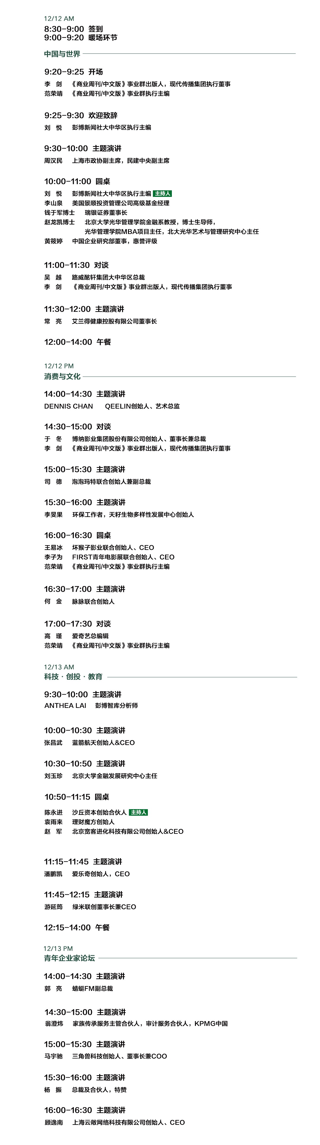 新浪财经讯 12月2日消息,由商业周刊中文版举办的主题为“展望2020”的论坛将于12月12日至12月13日在上海开幕。 《商业周刊/中文版》事业群出版人,现代传播集团执行董事李剑,爱奇艺总编辑高瑾,LVMH大中华区总裁吴越,蓝箭航天创始人&CEO张昌武,瑞银证券董事长钱于军等将出席并发言。[详情]