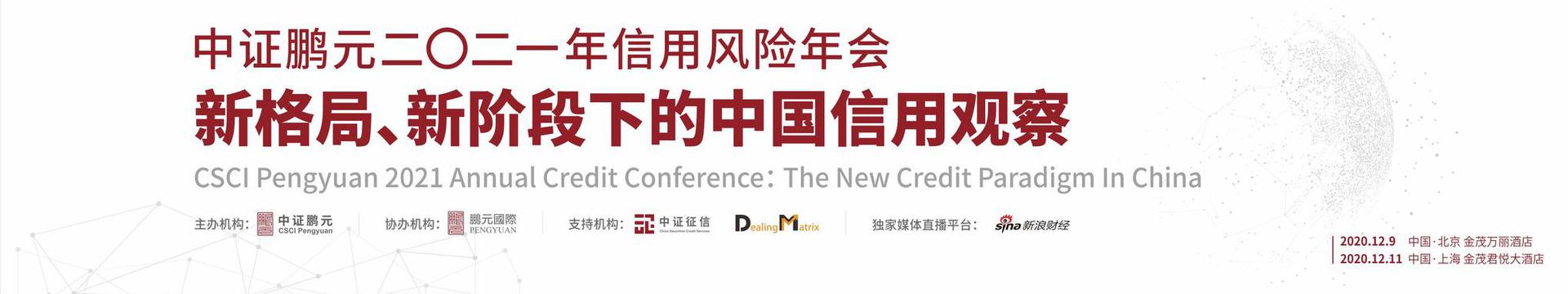 由中证鹏元资信评估股份有限公司主办的2021年信用风险年会“新格局、新阶段下的中国信用观察”将于2020年12月9日(星期三)、12月11日(星期五)分别在北京金茂万丽酒店和上海金茂君悦大酒店举办。
